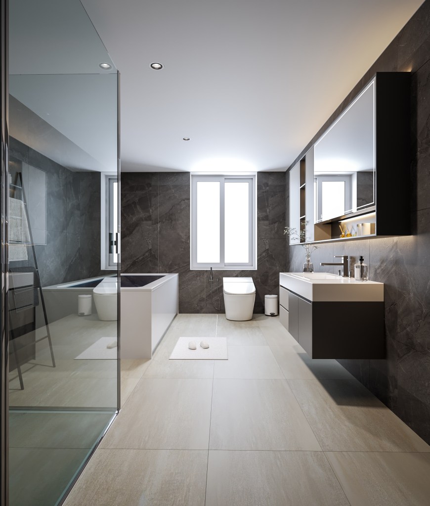 - All bathrooms in houses are fully floored with a generous tiling to showers.